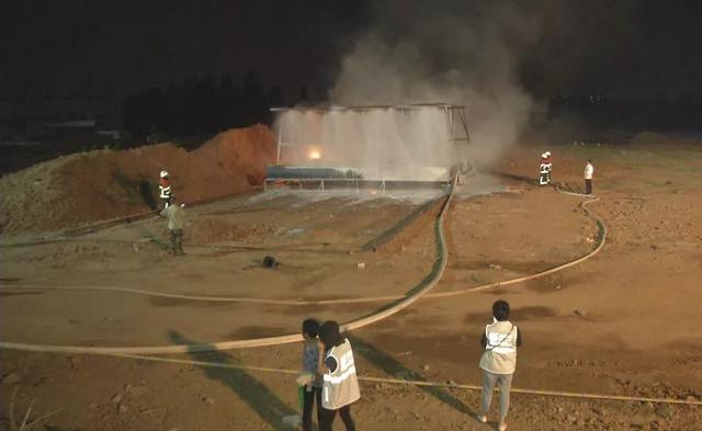 當晚,江南專汽研發的壓縮空氣泡沫消防車還成功進行了輪胎滅火實驗。實驗現場,四百個充分燃燒的輪胎,火焰高度25米,特制泡沫液僅用時1分53秒就將明火撲滅。